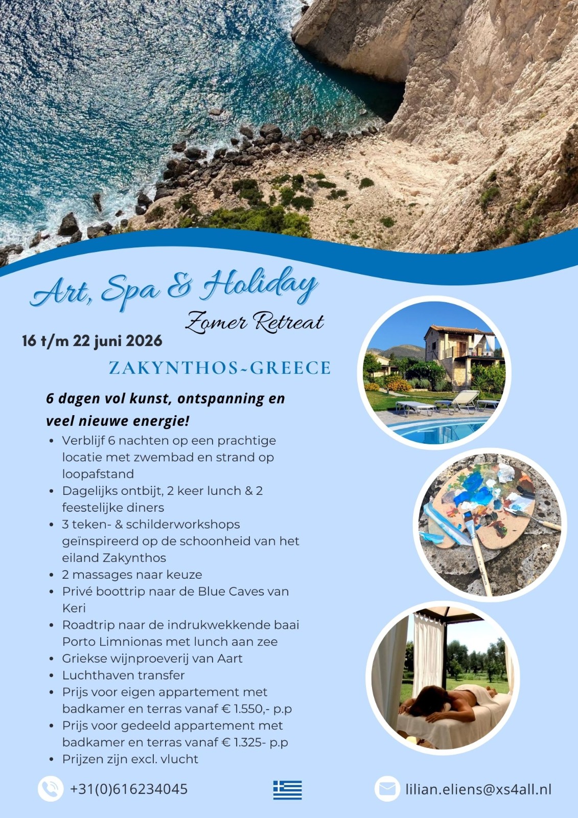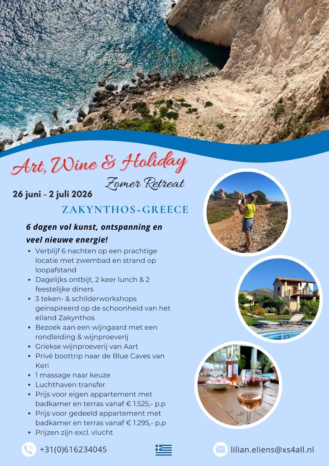Schilderworkshops Zakynthos Art, Spa & Holiday – 16 t/m 22 juni 2026 Art, Wine & Holiday – 26 juni t/m 2 juli 2026